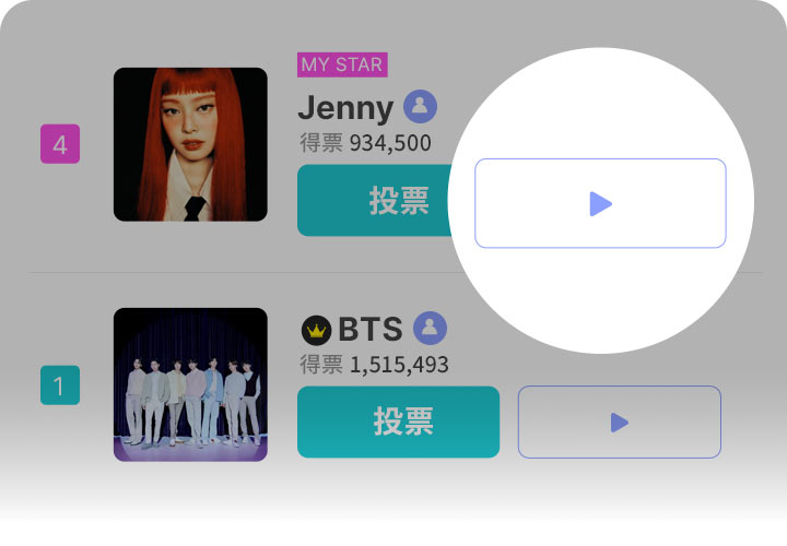 组合/个人/ Global Hot Star/韩国演歌排行中,不论名次,均可根据累计投票数获得特典。
